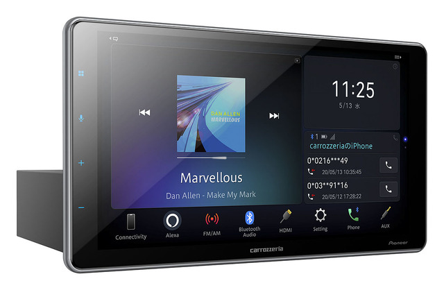 当機は、“カロッツェリア”がラインナップするディスプレイオーディオのフラッグシップ機だ。なおディスプレイオーディオとはその名のとおりモニターを有するカーオーディオメインユニットのことを指すのだが、当機はそのモニターをフローティング構造として本体を1DIN化させてある。ゆえに、1DIN分しか空きスペースのない車種でもディスプレイの搭載が可能となる。
