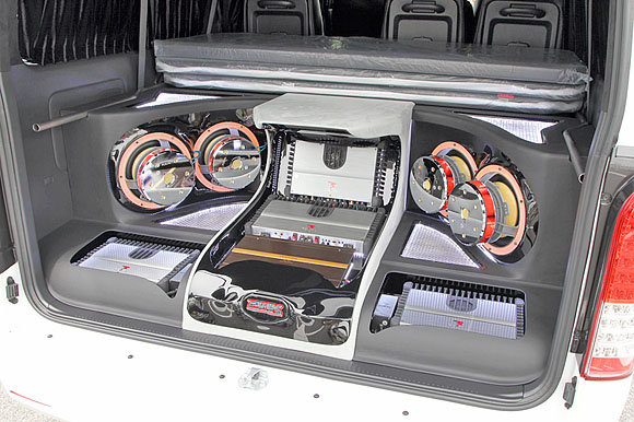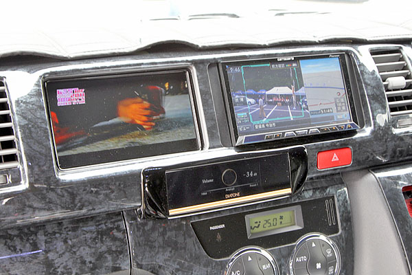 同店の最新作、ハイエースを観てほしい。このクルマをみると、『ピットハウスコスギ』の実力、そして思想が見えてくるはず。まずデザインセンス。天井からラゲッジまで、連なるようなシルエットが秀逸。フロントでは、3ウェイ+サブーウーファーのハイグレードシステムで良質なサウンドが聴け、後部座席にも専用のフロントスピーカーを設置、家族みんなが良音を楽しめる。さらにリアゲートを開ければ、ショー会場でギャラリーにもナイスサウンドをデリバリー。全体のオーディオをコントロールするのはダイヤトーンのハイエンドプロセッサー、DA-PX1。「聴かせる & 魅せる」を高次元で融合させることができるお店、というわけなのだ。