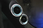 さて、フロントシステムの中で、いい音のためにコダワった第一のポイントは、スピーカーをW使いしていること。よりパワフルな音にしたいということで、最初の段階からW装着ありきで考えたという。しかしドアに関しては純正の使い勝手もある程度残しておきたいと考え、ミッドウーファーは13cmモデルをチョイス。13cmならWで使ってもスマートにインストールできる。しかし、16cm×1発よりパワフルだ。