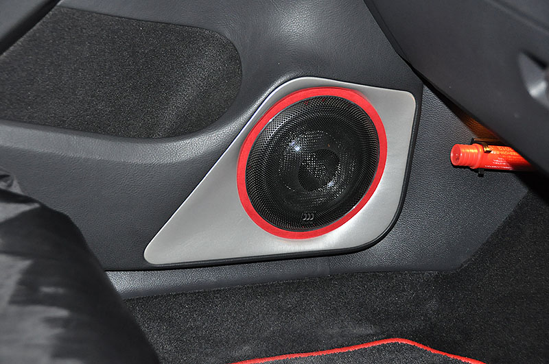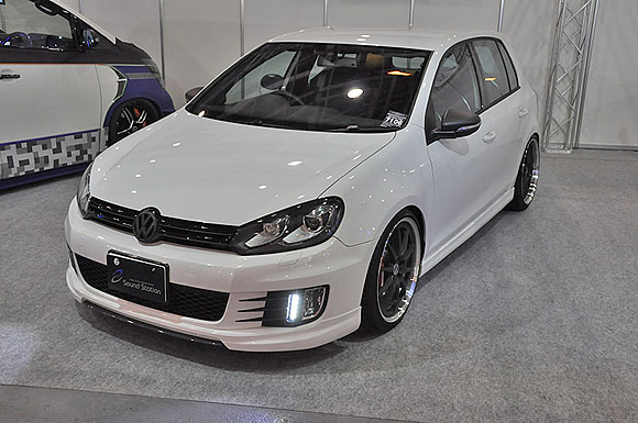 滋賀県から参加していたウイニングはGOLF6を展示。ソースユニットはcarrozzeria X RS-D7Xlll+RS-P99Xのハイエンド定番コンビに、iPodをセンターコンソールに埋め込み設置。フロントはmorel最上級スピーカーの3wayをアウターでインストールしている。シートバックにSW-G50が2発、ラゲッジにブラックスMX-4が2機という構成。システム構成を考えると柔らかく力強い音を想像してしまうが、このクルマは高い解像度とスピード感を持ち透き通った見晴らしの良いステージングが非常に心地よいクルマであった。