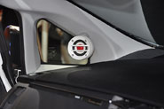 大阪の有名店カーオーディオクラブが展示したのは、昨年海外のモーターショーに展示したフルMTXのハイエース。全体の配色はモノトーンで、ポイントに使われているアルミやロゴ色の赤が引き立っている。ソースユニットはアルパインF#1で、プロセッサーを2機使ってコントロールし、フロントはMTXの2wayをダブルでインストールしている。ラゲッジは綺麗なラインと物量を感じさせる造りでサブウーファーやパワーアンプ、リアスピーカーが立体的に装着されている。広い車室内を有効的に使ったインストールが秀逸で、多くのハイエースユーザーにインパクトを与えたクルマだと思う。