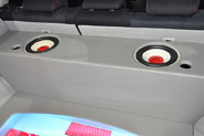 福井県の新鋭ショップPARADAの展示車は内外装共に完成されたオデッセイ。ソースユニットはcarrozzeria サイバーナビを使用して、アルパインのプロセッサーでコントロールしている。フロントは内装色に合わせた張り替えがカッコ良く、ロックフォードの2wayをアウターでインストール。ラゲッジは立体的なボックス仕様でmmatsのサブウーファー2発とパワーアンプを設置。細部まで丁寧な造りと統一されたカラーリングが目を惹くクルマであった。