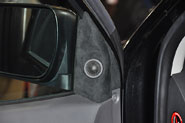 フラッグシップデモカーのBMW 320iは茨城県のクァンタムが制作。完成当初に視聴したときと変わって調整はDIATONEで行っている。サウンドナビ80プレミを軸にDA-SA3をピラーとドアにマウントし、シートバックにSW-G50を2発装着する2+1システム。スピーカー群を駆動するのがブラックスX2とカロッツェリアD8200だ。インパクトのある音作りで中低域の厚さが非常に際立つ。リスナーに訴えかけてくる迫力満点のサウンドであった。