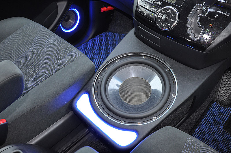 滋賀県の名店ウイニングからエントリーした今中さんのエスティマ。ソースユニットはグローブボックスに設置されたcarrozzeria DEH-P01、センターコンソールのナビはワンオフのフェイスパネルを製作して取り付けしている。FOCALの3wayにコンソール下に設置されたサブウーファーSW-G50をcarrozzeria RS-A99Xで駆動するシステム。バランスの整った音場でスピード感を感じる高品位なサウンド。トーンバランスも良く立体的に音楽を描き出しているクルマであった。