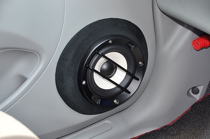 入門システムからハイエンドシステムまでハイレベルに仕上げてくれる滋賀県のボーントゥランからエントリーした木村さんのセカンドカーであるアイ。ソースユニットはcarrozzeria DEH-P970、BEWITHの入門スピーカーであるBE-FITをダッシュボード奥とドアにアウターでインストールし、同ブランドのパワーアンプであるR-107S 722S4機で駆動するマルチシステムを搭載している。SW無しのシステムなのだが、無理にミッドバスを鳴らさずクォリティーの保てる帯域までをしっかりと鳴らしているのに好感が持てるクルマであった。