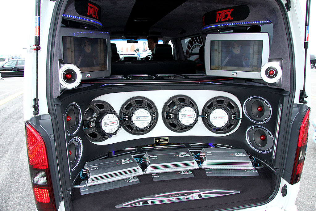 数々の賞を獲得するレジアスエースのオーナー、山田サンは一般にエントリー。ご覧のようにMTXオーディオを主張。サウンドから映像までフルに楽しめる至高のカスタムカーだ。物量もさることながら、サウンド面でも優れており、複数台のパワーアンプ使い方、マルチスピーカーの構築。各ユニット間のバランスや音場創りにも優れている。カーオーディオクラブの技によるところが大きい。