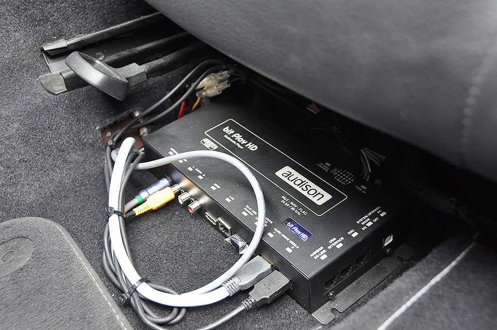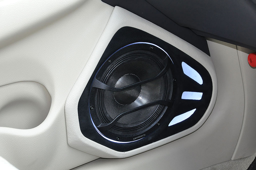 真っ赤なオープンでインパクトのある中村さんのイオスは、狭いスペースを上手く使い切ったハイレゾ対応のシステムでエントリー。ソースユニットはKENWOODのナビ、iPad、audison Bit playを急速に普及しているハイレゾ対応のプロセッサーであるHELIX PROに接続。小型パワーアンプのcarrozzeria PRS-D700を3機使い、BLAMの2way+サブウーファーを駆動する。まずセンターコンソールの造りが秀逸で、iPadの下にナビがはまるワンオフが美しい。奏でられるサウンドも高いS/Nで適度な解像度とゆったりとした暖かみを感じるサウンドが好印象であった。