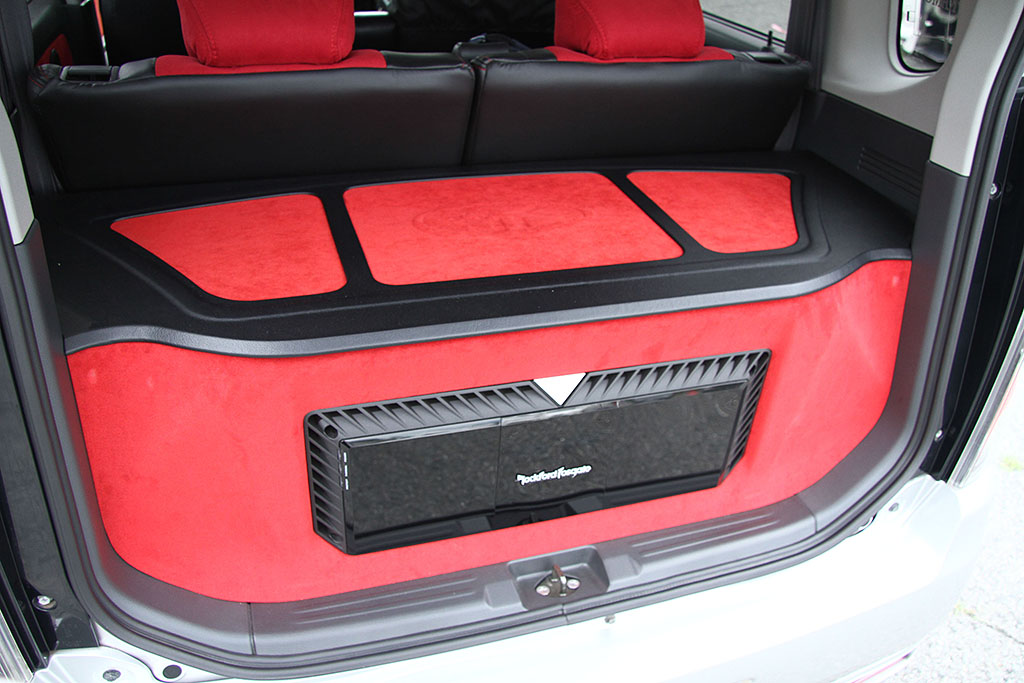 エクステリアからインテリア、そしてオーディオとカスタムの醍醐味を見せてくれたbBのオーナー、しょたくんさんはリアラゲッジのデザインが特にお気に入りとか。外向きを含め、ロックフォード・フォスゲートをフルに使ったシステム構成に、ダイヤトーンNR-MZ80PREMIサウンドナビをプラス。内蔵プロセッサー機能を積極的に使い的確な音場創りとキレのよいサウンドを放つ。ロックフォードの魅力がダイレクトに伝わってくる。ということでマイカーライフ賞を獲得。おめでとう!
