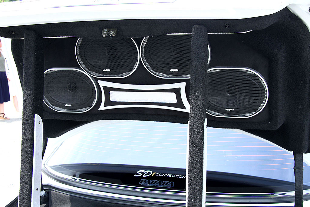 同イベントは初参加と語るシーマのオーナー、鹿野さんは一般ドレスアップ部門にエントリー。システムはこだわりのブランドで構成され、MATS(マッツ)のスピーカー、サブウーファー、そしてパワーアンプを導入。ヘッドユニットはカロッツェリアほか、ロックフォード3Sixtyも装備され、純正オーディオの再生、iPadの再生も可能としている。トランクの作風は精悍でシックなもの。轟く低音の出方と凄みはマッツならではだ。