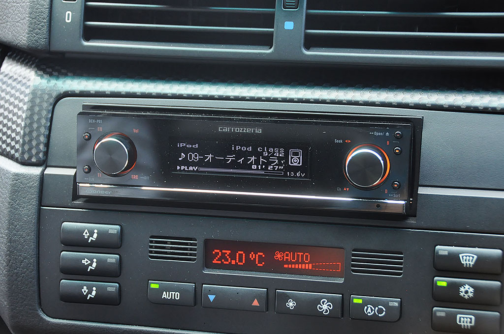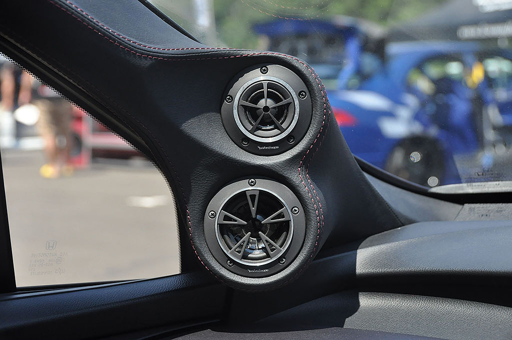 群馬県のガレージAからHI POWER Hi-Fiクラスにエントリーした細野さんのE46。ソースユニットはcarrozzeria DEH-P01、Rockford Fosgateの最高級スピーカーであるT5をミラー横とドアにアウターでインストールしている。荷物の出し入れを考えてトランク上部にパワーアンプを設置して、トランクスルーからサブウーファーが顔を覗かせる。非常に研究熱心なユーザーで、ショップと相談しながら音質調整を行っており、今回の調整ではミッドバスの制動が驚くほどに良くなっている。ベースがしっかりとしているので、あとは対コンテストの音作りが出来る様になれば毎回上位を目指せるクルマだ。