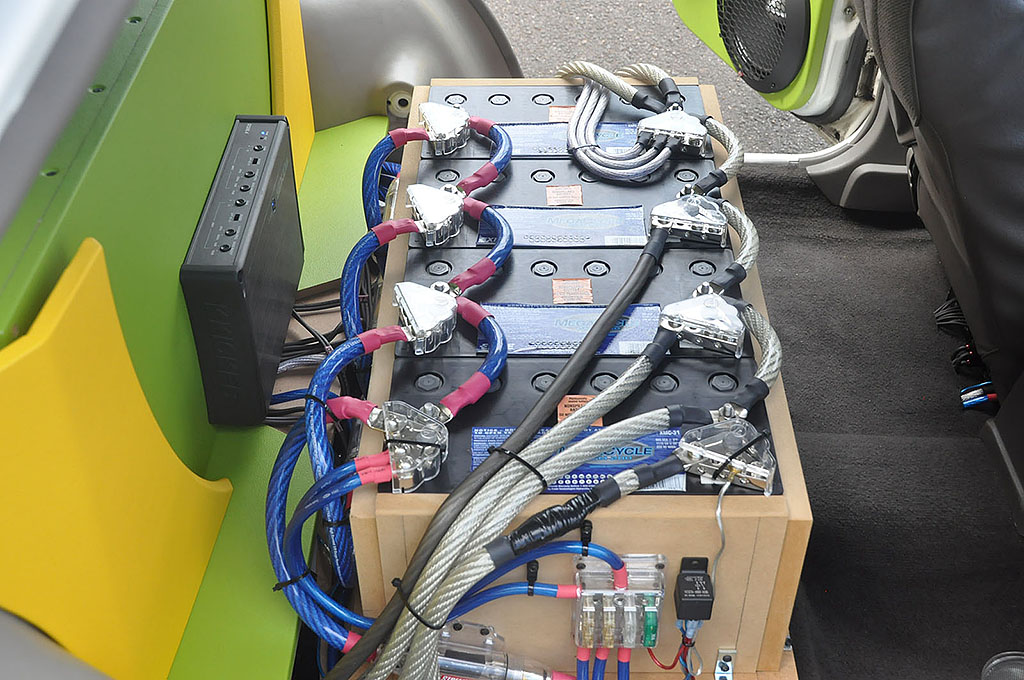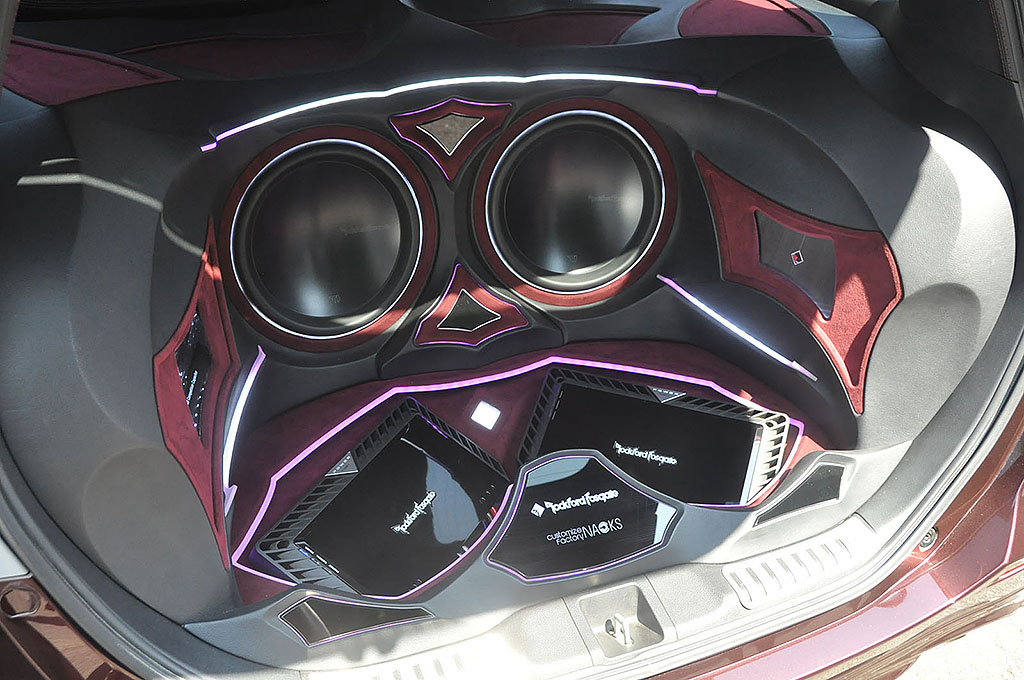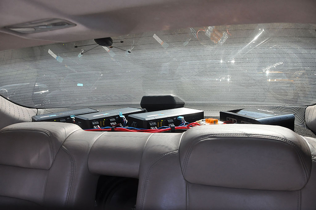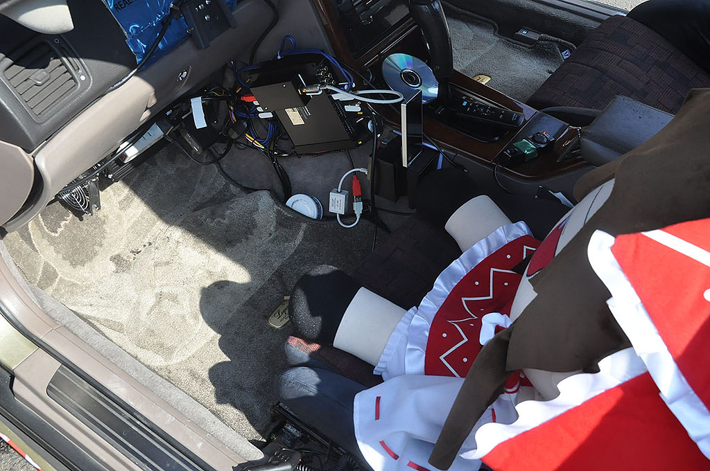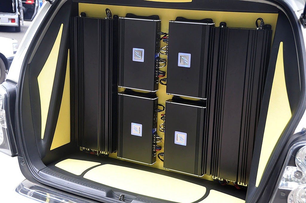 栃木県のLCサウンドファクトリーからACG一般クラスにエントリーした小針さんのクルーガー。ソースユニットはiPadを使い、VIBEの10cmブレットトゥイーターと20cmのミッドバスをダブルで装着。シートバックには15インチサブウーファーをミリ単位の位置調整を行いバランス良く干渉することなくパックマン方式でインストールして背面にはパワーアンプ6機が収められている。全てのユニットが大型でありながら、ブラック & イエローの配色と、細部にまで計算されたユニット配置によって見事にバランス良くカッコ良くまとめられたクルマであった。