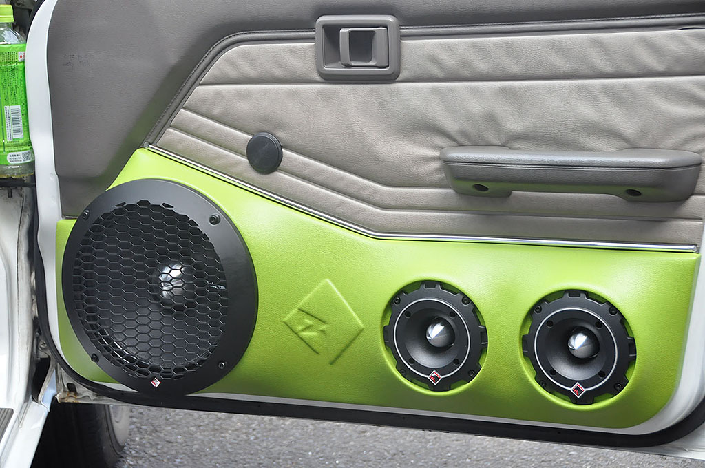 神奈川県のカーファイからACG一般 & 大音良クラスにエントリーした飯村さんのブルーバード。大人達が大人げなく大きな音を楽しく鳴らす! がコンセプトの大音良に新たな注目車両が登場。ソースユニットはDIATONEサウンドナビ60PREMIにフロントドアにはロックフォードの10インチミッドバス+ブレットトゥイーター2発、リアドアには10インチミッドバス2発+ブレットトゥイーター2発を4chパワーアンプ2機でドライブする。ラゲッジは名機で揃えられ、キッカーのスクエアサブウーファー2発に出力10,000Wを誇るパワーアンプが鎮座してサブバッテリー5個も装着。やるなら勝てる、勝負になるようにと組み上げた結果、見事にクラス優勝! もっと鳴らし込む事で他のクラスでも好勝負出来るクルマに仕上がるはずだ。