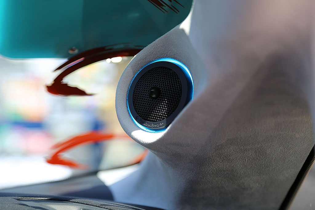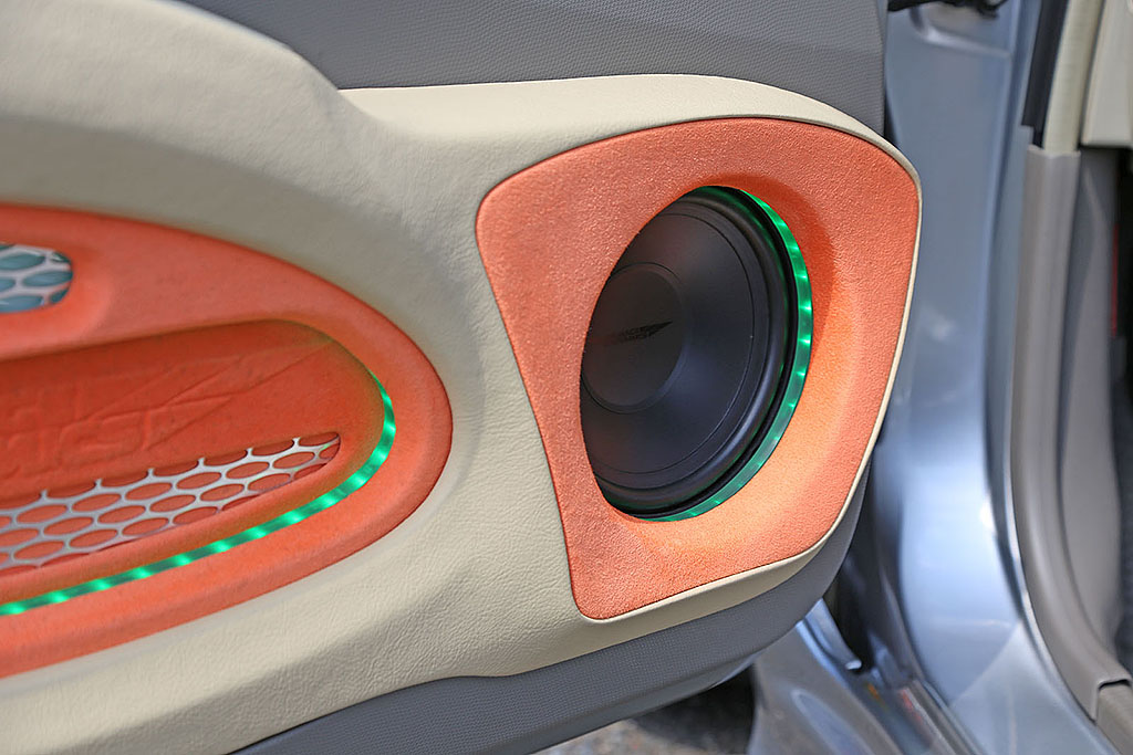 ペーパーコーンならではの、キレの良さとレスポンスを活かすため、MMATSジャガーノートシリーズの15inサブウーハーをはじめ、ミッドレンジ、ツィーターともMMATSで統一。好みのクラブ・ダンスミュージックを、大音量でも気持ち良く鳴らせるシステムを目指したという大塚さん。指向性の高いブレットタイプのツィーターなので、ドライビングポジションで最適な聞こえになるよう、「向き」の調整に注力した。インストーラーである施音人工房・谷口氏によると、サブウーハーのあまりの鳴りっぷりに、デッドニングや全体のバランス制御に苦労したという。