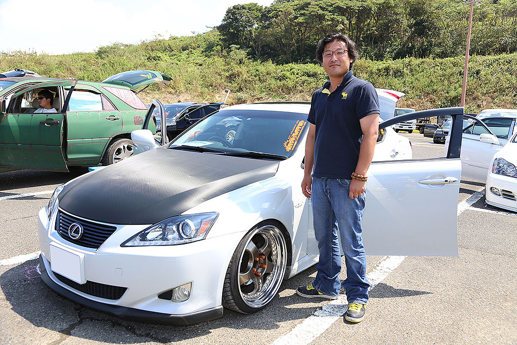 カーボンシート貼りのボンネットが、スポーティームードを醸している竹浦さんのIS。この雰囲気を壊さないよう、レクサス純正のマークレビンソンプレイヤーはあえて変更せず、グラウンド・ゼロのプロセッサーで音響を微調整。同じくグラウンド・ゼロのサブウーハー2発をガッツリ鳴らすため、バスレフ式ボックスを製作し、トランクにインストールした。ドアスピーカー、Aピラーのツイーターもグラウンド・ゼロで統一。純正流用のヘッドユニットながら、イルミネーションをブルーに変更したことで、夜間の見栄えがグッとお洒落になった。