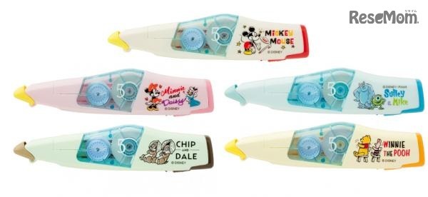 プラスのディズニーコレクションは、使いやすい定番文具に「キャラクターを選ぶ楽しさ」を加えた限定企画として展開されるシリーズ。今回は「コミックテイスト」をテーマに、絵本からそのまま飛び出してきたような、ストーリー性を感じるイラストを採用。キャラクターたちのおどけた表情がかわいらしい。デザインは2製品共通、ミッキーマウス、ミニー&デイジー、サリー&マイク、チップ&デール、くまのプーさんの全5種類。