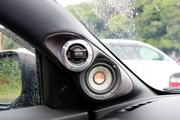 プジョー・308CCで颯爽と登場した高橋さん。積んでいるユニットは、以下のような顔ぶれとなっている。メインユニット兼コントロールユニットとして使用しているのは、ダイヤトーン サウンドナビ、NR-MZ100PREMI。それに組み合わせるパワーアンプは、モスコニの4chモデル。フロントスピーカーとサブウーファーはともに、ヘリックスを使用している。昨年末に納車され、年明けとともに現状のシステムが完成されたとのことだ。なお高橋さんはドレコンに出ることも趣味としていて、オーディオを組んだそもそもの理由も、ドレコンで目立つためだと言う。ちなみに、サウンドコンセプトは、“クセのない音で、何でも鳴らせるコスパの良い音”とのことだった。