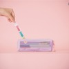 「スラリット」は縦長のケースに入ったフィルム付箋。最近流行しているスタンド式のペンケースに入れても取り出しやすい。コンパクトサイズなので、細身のペンケースに入れたり、本に挟んだりしてもかさばらず、スマートに持ち歩くことができる。