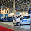 パイオニア(カロッツェリア)は、ハイエンドメインユニット『DEH-P01』を核として、『カロッツェリアXシリーズ』のパワーアンプ×3台で『1000RSシリーズ』のスピーカーで構成されるフロント3ウェイ+サブウーファーを鳴らすデモカー、『BMW・320』を展示。また、室内が試聴ルームとなった『トヨタ・ハイエース』も出品した。このリアスペースでは、純正スピーカーと市販スピーカーの聴き比べを、さらにはサブウーファーの有り無しの聴き比べが行えた。また、最新AV一体型ナビ『サイバーナビ』の機能を疑似体験できる“バーチャルリアリティシステム”によるデモンストレーションも実施され、来場者を大いに楽しませていた。