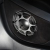 ミッドバスはドアにアウターバッフルとして取り付けられる。ドアパネルの下部をうまく利用して広いバッフル面を確保、スピーカーの周囲を人工スエードで処理するなど、純正ドアとの融合もピタリと決まる。純正のプロテクションを加えてデザイン面と音ヌケの良さを引き出した仕上げにも注目だ。