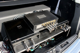 「気持ち良くアニソンが聴けるサウンド」を目指したオーナーがたどり着いたシステムがこれだった。スピーカーにはフロント3ウェイにディナウディオのエソター2、さらにリアドア(左右)にエソテックの20cmミッドバスをインストールする4ウェイステムとした。パワーアンプにカロッツェリアのA99X×4台を用いたヘビーなシステムデザインを採用。ソースユニットにはウォークマンZX-2を、プロセッサーにはヘリックスのDSP-PROmk2を組み込んだ。ヘッドホンで聴くように左右のバランスを完璧な状態にしたかったオーナー、定位を明確に引き出すことがかなり大きなファクターを占めたという。試聴でも目標とした明確な定位が感じられた。