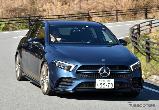 新しいメルセデスAMG 35シリーズの端緒を切るモデル……。リリースの文面で端緒を“開く”ではなく“切る”としているところが、いかにも勢いのある高性能車の紹介文らしい。「45シリーズ」に次ぐ、平たくいうとヤンチャなモデル、それが『メルセデスAMG A35 4MATIC』である。