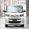 大石:ekクロススペースは、これまでのekスペースカスタムから決別して完全にSUV方向に振り切りました。そうはいっても普通の形をしたエアロ系、いわゆる昔ながらのカスタム系のクルマが欲しいというお客様は必ずいます。その受け皿も必要だろうということで、ekスペースのターボだけは少しスポーティーに見えるようにしました。具体的にはグリルを黒くし少し洗練させ、かつ力強いイメージを出しました。またコーナープロテクターのような用品も作りました。