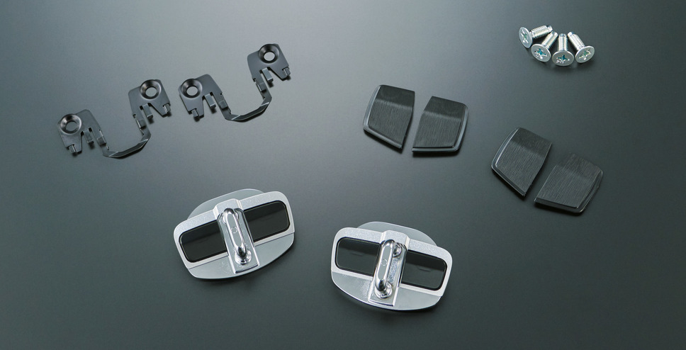 ドアスタビライザーはドアのストライカー部分にスペーサーを入れ隙間を埋めることで、ステアリング操作時の車両反応を向上させ、クイックなレスポンスに仕上げるパーツ。キャッチ側にスライディング機構を持たせることで隙間をゼロに自動調整でき、車両側に加工をすることなく装着が可能。