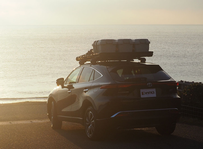 「INNO エアロラック120」は高級SUVやミニバンにフィットするワイドなサイズで、大型車に向けたハイエンドモデル。現在のルーフラック市場では選択肢が少ない大きめのクルマ向けに、ワイドなサイズを実現しながら、アーバン×プレミアムをコンセプトとした、これまでにない新しいデザインに仕上げられている。