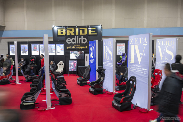 ブリッドでは新素材であるNUGRAIN(ヌグレ)を用いたシートであるえるエルゴスターが製品版(参考出品)として展示された。東京オートサロン2025でプロトタイプが発表され反響を呼んだ同モデルの正式リリースとなるモデルとあって多くの来場者に注目を集めた。