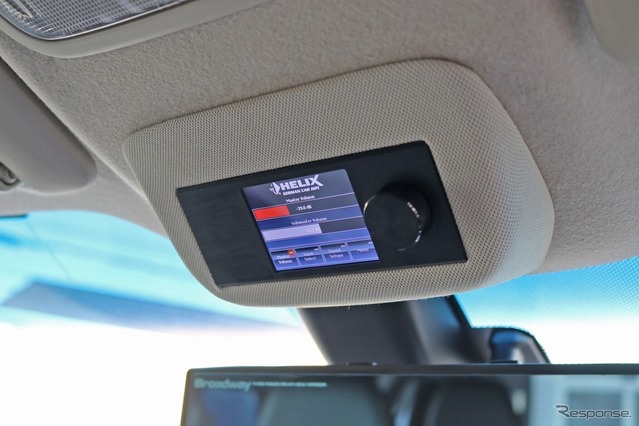 ラゲッジに搭載したモスコニのパワーアンプであるPRO4/10を用いてドアのミッドバスと共にマルチアンプシステムでドライブするツイーター。狙い通りのきれいで澄み渡ったサウンドを車内に行き渡らせるキーとなるユニットになっている。