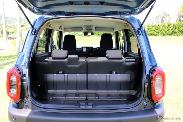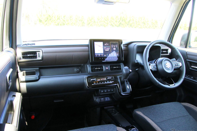 これにはユーザーからの声もあったという。「もう少し格好良いSUVが良いというものです。いまのお客様は女性の方が多いことから、可愛いというイメージを残しつつ、“格好可愛い”印象にしました」と説明する。「そのためにインテリアの助手席前にあるカラーパネルをやめた一方、アイコニックな丸目は残すなど、守るところと変えるところをはっきりさせて、ハスラーと区別化しつつ小型車としての質感を上げています」。