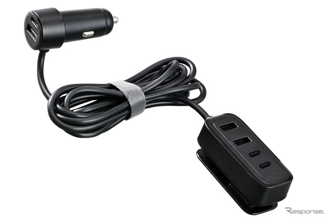 当品は、DCソケットに挿して使う電源アイテムだ。これを用いると3つのUSB-Aポートと3つのUSB-Cポートを増設できる。しかもプラグ部分に2つ、別体パーツに計4つとそれぞれにポートを装備するので、車内の広範囲にて電源供給を行える。