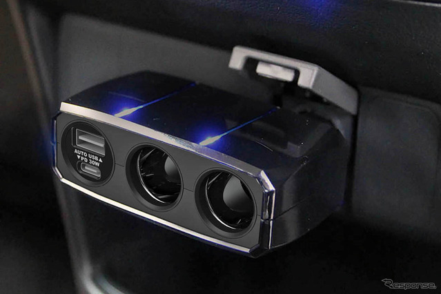 続いては、「Kashimura(カシムラ)」の『2連ダイレクトソケット PD30W/リバーシブルUSB自動判定(KX-246)』(価格:オープン、実勢価格:2080円前後)と『2連セパレートソケット PD30W/リバーシブルUSB自動判定(KX-247)』(価格:オープン、実勢価格:2180円前後)をピックアップする。なおこれら2つの違いは電源供給部がDCプラグ部分と一体化しているか別体化されているかで(『KX-247』のコード長は1m)、それ以外は同一だ。ともに2つのUSBポート(A&C)と2つのDCソケットを車内に新たに設定できる。