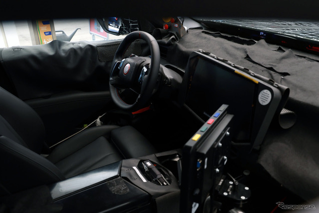 インテリアの大部分は黒い布で覆われているものの、パノラミックiDriveが搭載されることがわかる。これは大きな転換点だろう。従来のインストルメントクラスターが、フロントガラス下部に配置されたピラー・トゥ・ピラーの細長いディスプレイに置き換えられたのだ。
