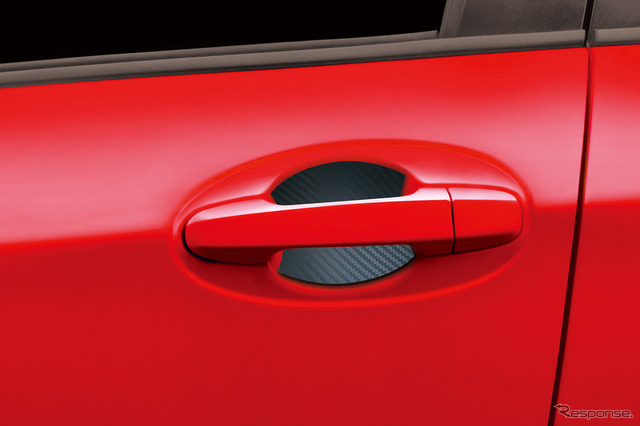 そして、カーボン調のデザインであることも特長だ。小キズ防止アイテムでありながらドレスアップパーツとしても機能する。愛車のルックスにワンポイント彩りを付与できる。