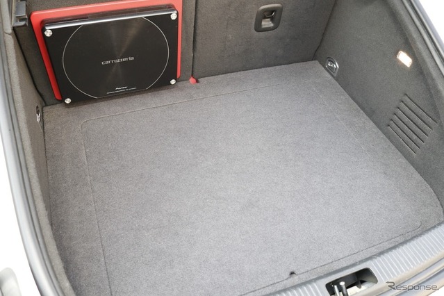 鮮烈なレッドに処理されたラゲッジのオーディオボードだが、普段はカバーを掛けることで純正状態にセットできる。もちろん荷物の積載も可能で普段使いにも十分対応する。