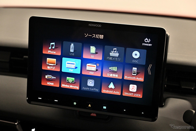 ワイヤレスミラーリング(Android)に対応し、スマホ映像をWi-Fiで大画面表示。さらにHDMI入力/HDMI出力を備え、前席での視聴もリアモニター出力も柔軟に構成できる。周辺機器では3A急速充電対応USBケーブル(別売KNA-24USB)も用意され、電源面の不満もケアする。