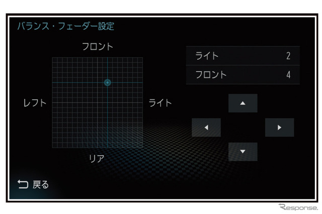 早速、その設定法を説明していこう。まずはバランスを操作して自分にとって左右の音量差がないようにして、次いでフェーダーを「10:0」でフロントに振る。