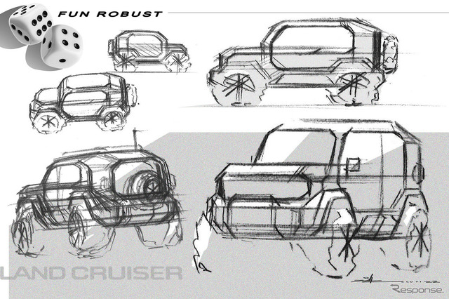 このクルマの車両コンセプトは「Freedom&Joy」。これをキーワードに「サイコロのようなモチーフ使って、アイコニックで新しいプロダクトとしてランドクルーザーの名前にふさわしいデザインにした」とデザイナーは語る。