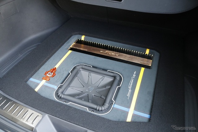 ラゲッジにインストールするユニットは数少ない。後方にはスクエアなデザインのベースになっている、キッカーのサブウーファーであるL7(VL7122/L7専用設計のウーハーボックス)をインストール。L7のトレードマークである角形の振動板がラゲッジのデザインの中心的な存在になっている。サウンド面でも低音の鳴りっぷりの良さが際立つユニットであるのも魅力。オーナーも「低音が際立っているところも気に入っている」と満足そうだ。