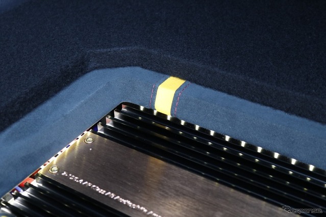 ユニットのレイアウトもラインのデザインもシンプルだが、オーナーが望んだ「印象に残るデザイン」が完成した。他のユニットは床下にレイアウトするなど、見せるユニットを厳選するなど、徹底したデザイン性の追求が、このクルマのラゲッジ・インストールのクオリティを大きく押し上げている。