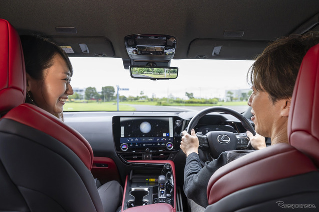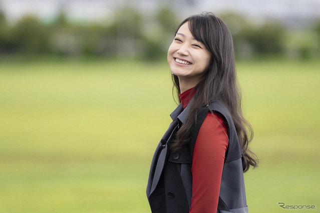 助手席に座るのは女優・タレントの相沢 菜々子さん。自動車関連のメディアやイベントに引っ張りだこの彼女は、数多の名ドライバーの隣で国内外の様々なクルマの走りを経験。運転席では気づかない同乗者目線で、鋭い意見を述べることもしばしばだ。