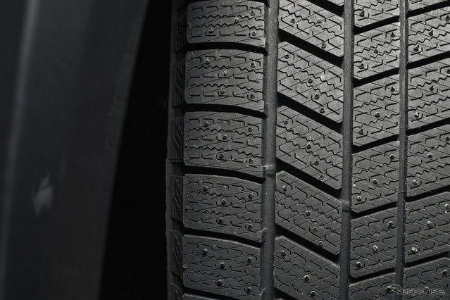 「ゴムの柔らかさを保つ『ロングステイブルポリマー』を先代VRX3より増量して性能持続性にも配慮しているんだ」。ブリヂストンは氷上ブレーキ性能の経年変化を4年後まで想定してシミュレーション。従来品より氷上性能の低下が抑えられるという結果を得ている。「じゃあ雪の予報を聞いてから慌てるんじゃなくて、そろそろ降りそうっていう時期に前もって履き替えることで安心感を得ることができますね」