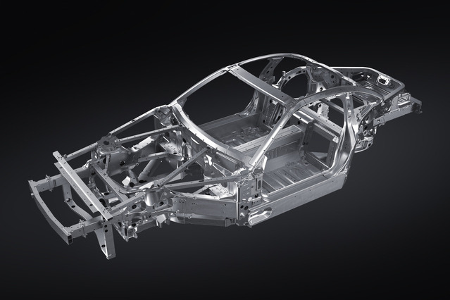 軽量・高剛性の柱となるのが、トヨタ初採用のオールアルミニウム骨格だ。大型中空アルミ鋳物を骨格主要部に配置し、アルミ押出材など、最適な部材配置と接合技術で高剛性を実現している。ボディパネルにはアルミニウムのほか、CFRPも使用した。