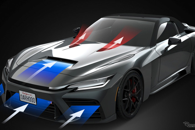 通常の市販車開発では、エクステリアデザインを決めてから空力効率や冷却性能を検討していくが、GR GTは公道を走るレーシングカーとしてあるべき姿を考え直した。FIA世界耐久選手権(WEC)の参戦車両を手掛けた空力エンジニアもGR GTの開発に携わり、デザイナーと議論を重ねた結果、「空力モデル」と呼ぶ、空力設計のメンバーが提案した理想のフォルムを表わした模型をベースに車両パッケージを決定した。そのうえで、量産化を見据えてエクステリアデザイナーがスケッチを描き、最終的なデザインを決めていくという逆転の手法を取った。