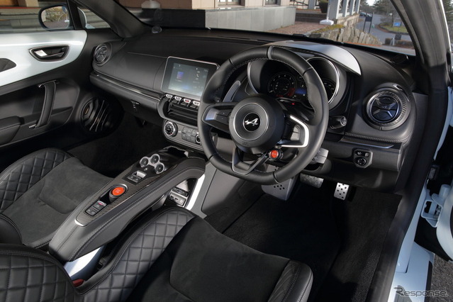 とはいえ淡いグレーのレザーシートに山並みを連想させるステッチパターン、緑ががかったブルー外装の組み合わせは初披露で、ハイパフォーマンスGTの側面を強めた優雅な仕様だ。従来の「A110 S」といえば、自動的にアルカンターラのバケットシートしか選べなかったので、快適装備を充実させたシャシー・スポールという点に、GTSの魅力がある。
