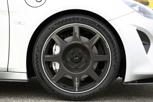 最後に乗ったのはA110 R 70。これまでも、さらなる軽量化モデルとしてカーボンを多用したRは存在してきた。しかしR 70は創業70周年を記念し、世界770台限定で最初期のRが備えていたデュケーヌ社製のカーボンホイールを、ボディ同色のライン入りで再び採用したのだ。これは、すでに完売してしまったがボンネット、ルーフ、リアフードのカーボンパネルを青・白・赤のボディと同色とし、“A70”の記念ロゴをルーフにカーボン目地の透かしであしらった「A110 R 70ブルー(同ブラン、同ルージュ)」に準じる仕上げといえる。ボディパネルはカーボン地のままだが、カーボンホイールのリムがボディと同じマットシルバーで彩られているのだ。車両価格は1790万円となる。