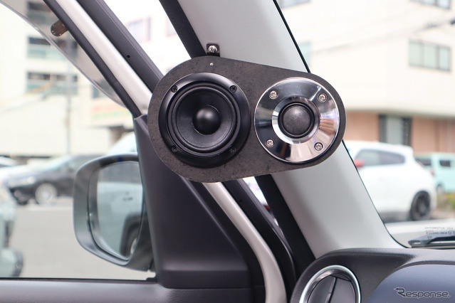 オリオスペックcanarino12Vをメインプレーヤーとし、ヘリックスDSP ULTRAとの組み合わせとなっている。DEERは能率が高く、瞬発力や音離れの良さ、かつワイドレンジだ。取り付けの工夫と綿密なチューニングの結果、ナチュラルな美音がフロントウインドウに広がる。