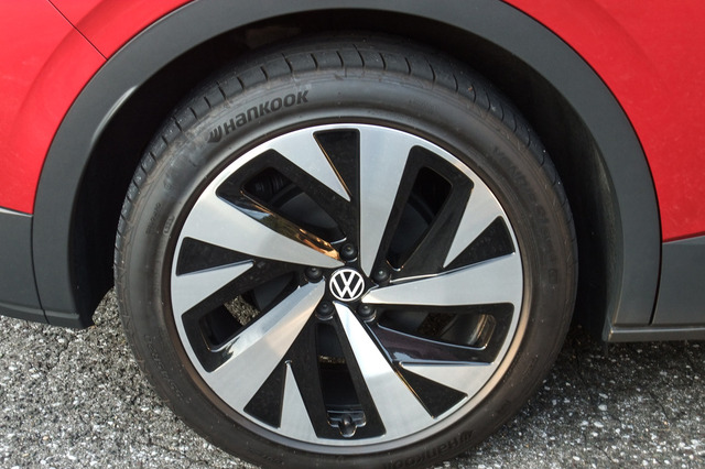過大な車重はコーナリングスピードに関しては不利に働くが、ID.4 Proは前235/50R20、後255/45R20というファットなタイヤを履いており、山岳地帯のワインディング区間でも十分な速力を示した。ただし絶対的なウェイトの影響は避けられず軽快感は希薄。タイヤグリップで強引に曲がるという感じであった。