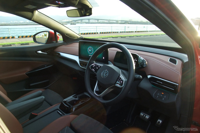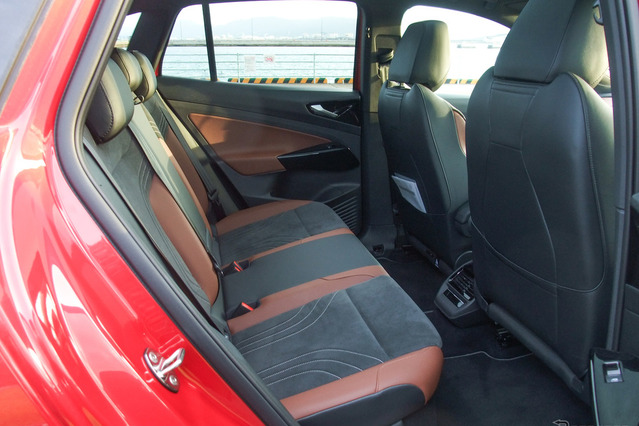 空間設計の特徴は車体の隔絶感が強いことで、乗り込んでドアを閉めると外が遠い世界に感じられる。フォルクスワーゲンはじめドイツ車は全般的にその傾向があるが、ID.4はそれがとくに顕著で、頑丈な装甲に守られているという印象だった。